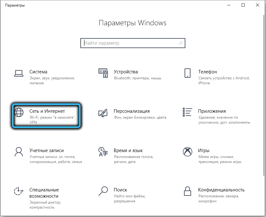 Откройте Параметры Windows и пройдите в настройки “Сеть и интернет”;