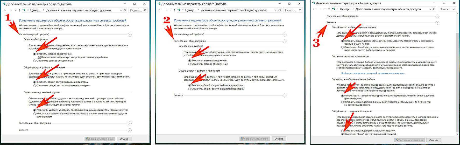 Затем в профили Все сети активируйте опции: