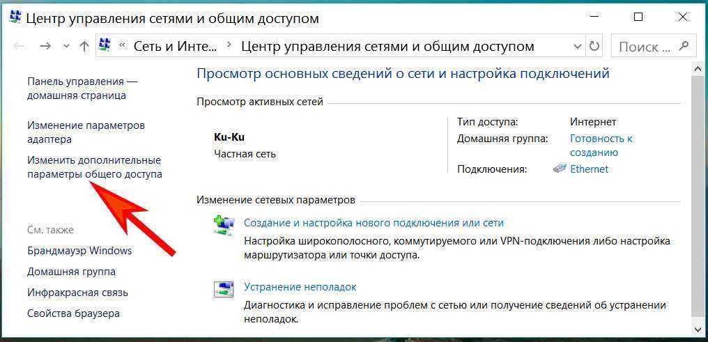 - Включить доступ к файлам и принтерам