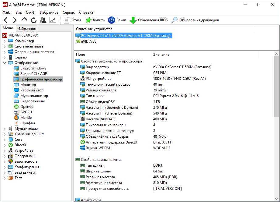 Кроме уже рассмотренных небольших утилит, существуют две более функциональные программы – Everest и AIDA64. Вторая является современным вариантом первой и требует оплаты за использование. Однако если определить модель видеокарты требуется только один раз, можно воспользоваться условно-бесплатной пробной версией, работающей в течение 30 дней.