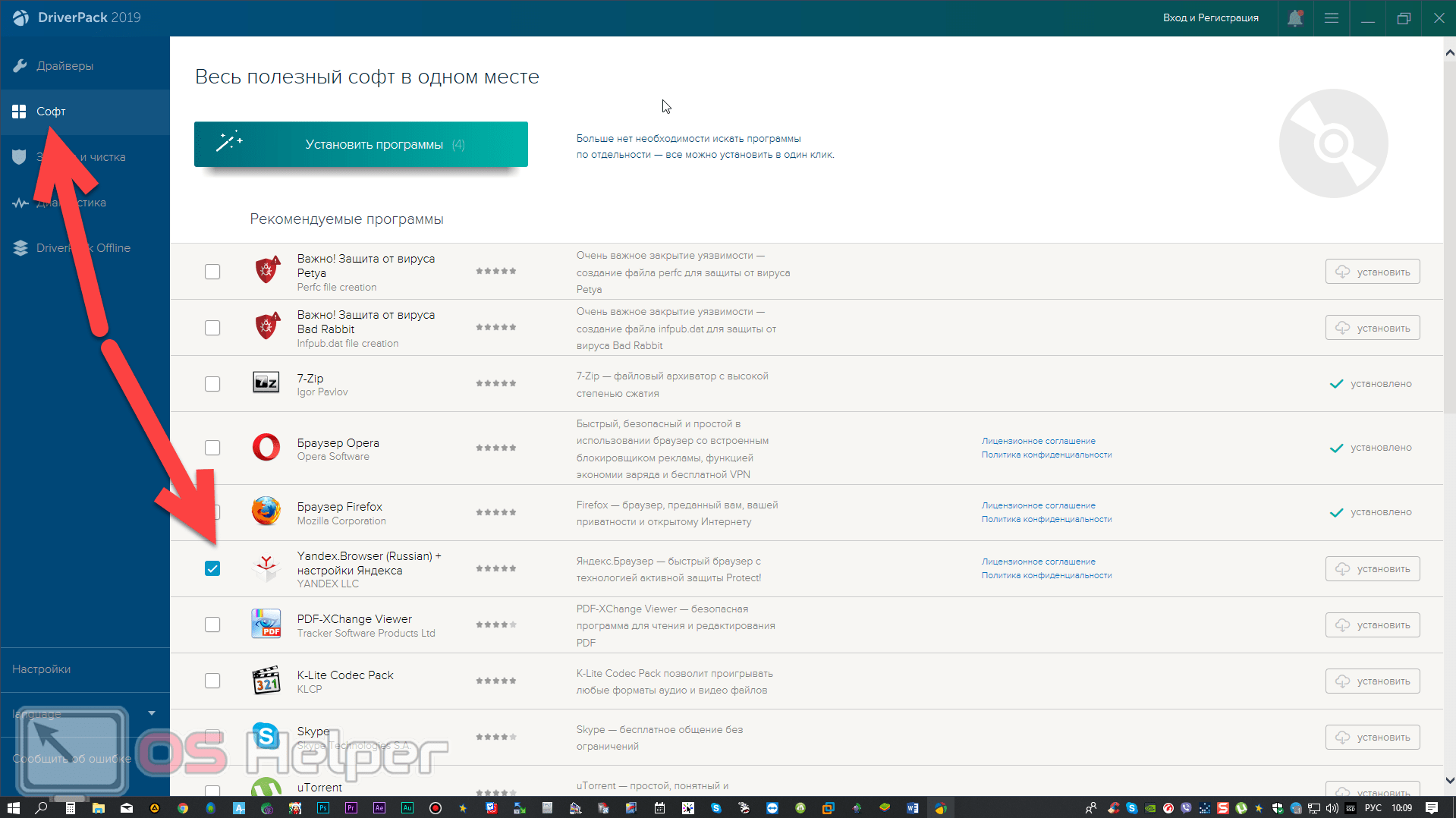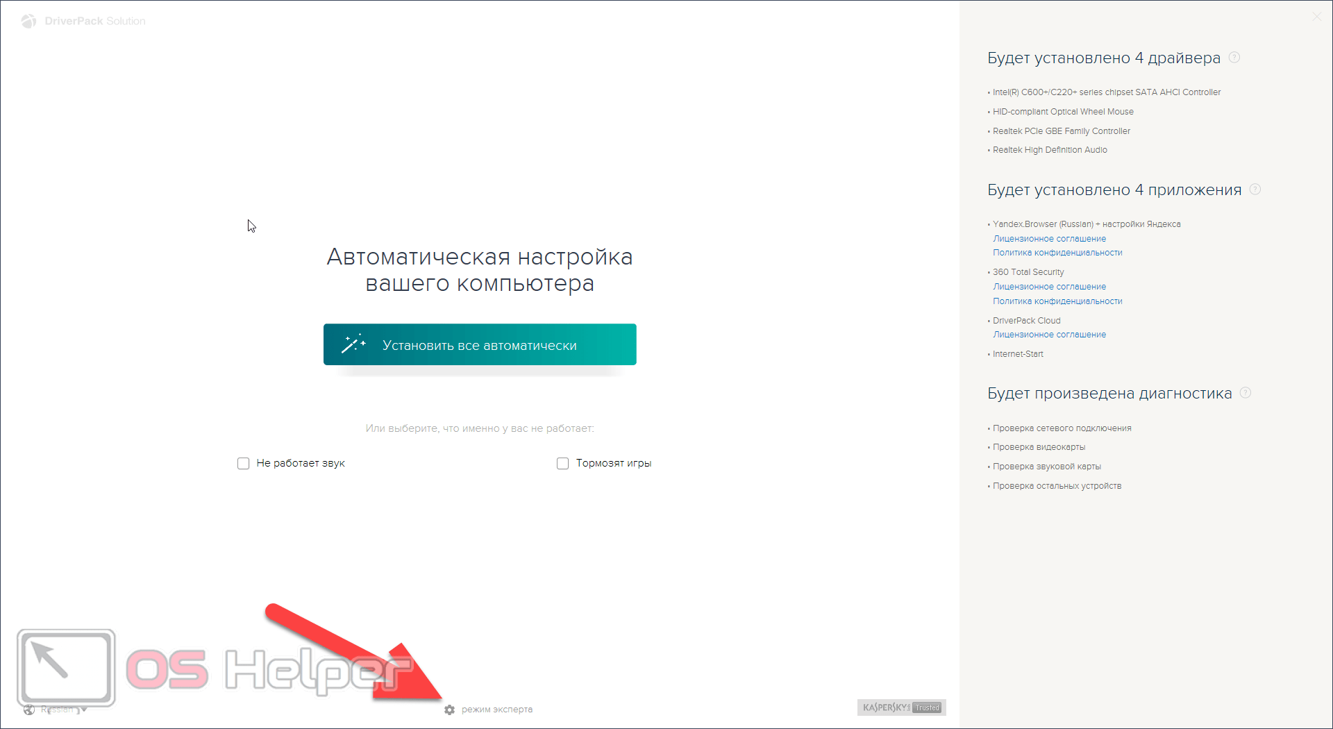 Утилита просканирует ваш ПК, найдёт недостающие драйверы и предложит их установить. Однако DriverPack Solution имеет обыкновение вместе с драйверами ставить на компьютер кучу ненужных программ, поэтому прежде, чем приступать к установке, внимательно пролистайте все вкладки и снимите галочки с ПО, которое устанавливать не планируете.