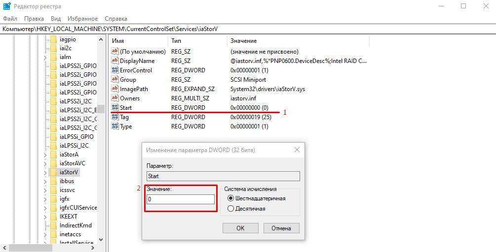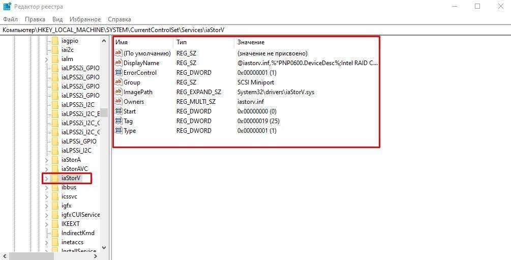 - пройтись по маршруту: «HKLM \ SYSTEM \ CurrentControlSet \ Services \ iaStorV»;