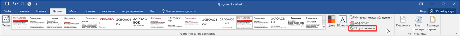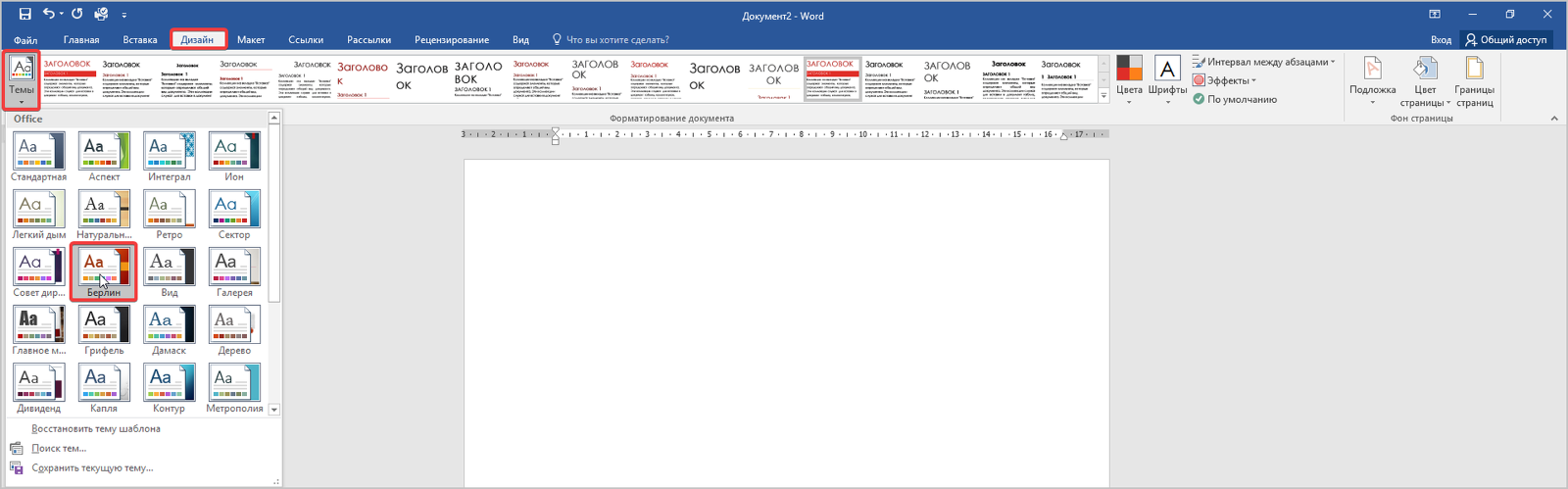 Изменение темы и использование ее по умолчанию в Word или Excel