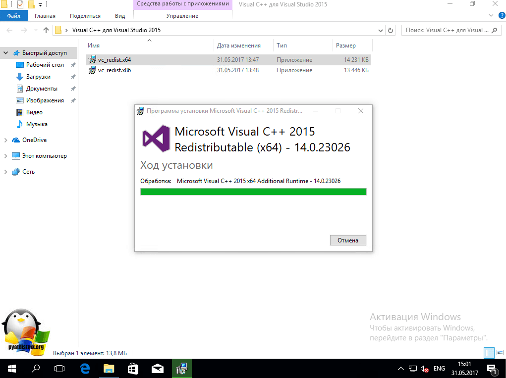 Начнется инсталляция Microsoft Visual C++ 2015