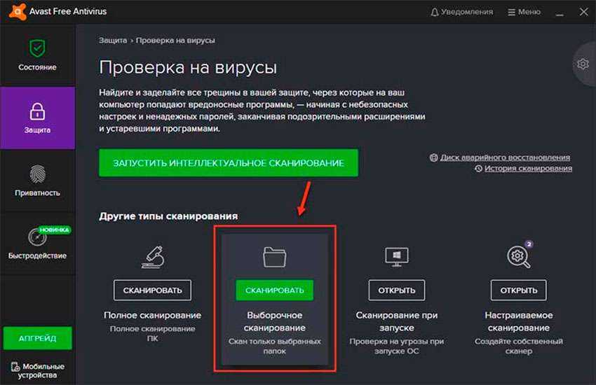На странице антивируса нажмите кнопку «Выполнить».