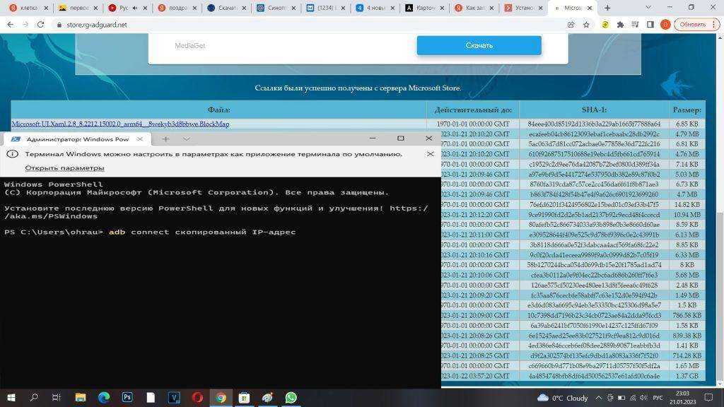 Ручная установка Android-приложений в WSA с помощью adb.exe