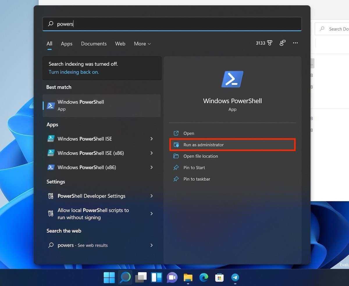 Вы получите файл с расширением MSIXBUNDLE. Сохраните его в папке по вашему выбору. Затем откройте поиск и введите PowerShell. Щелкните Запуск от имени администратора, чтобы запустить консоль от имени администратора.