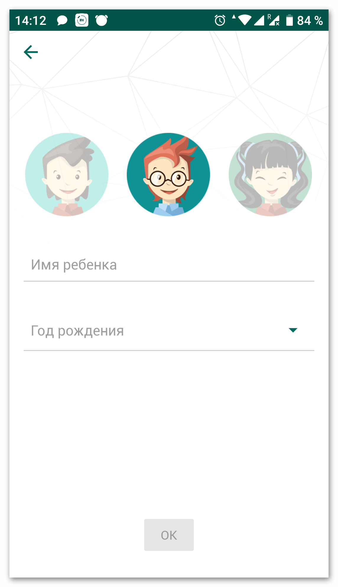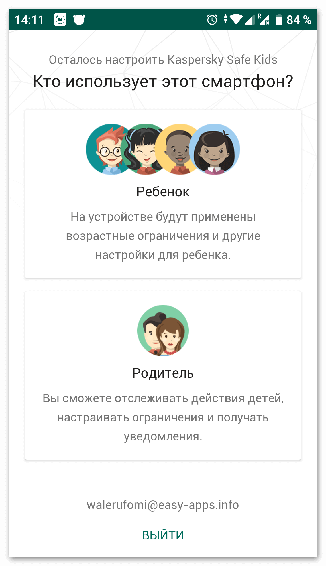 Для активации родительского контроля выбираем «Ребёнок» и регистрируем профиль малыша.