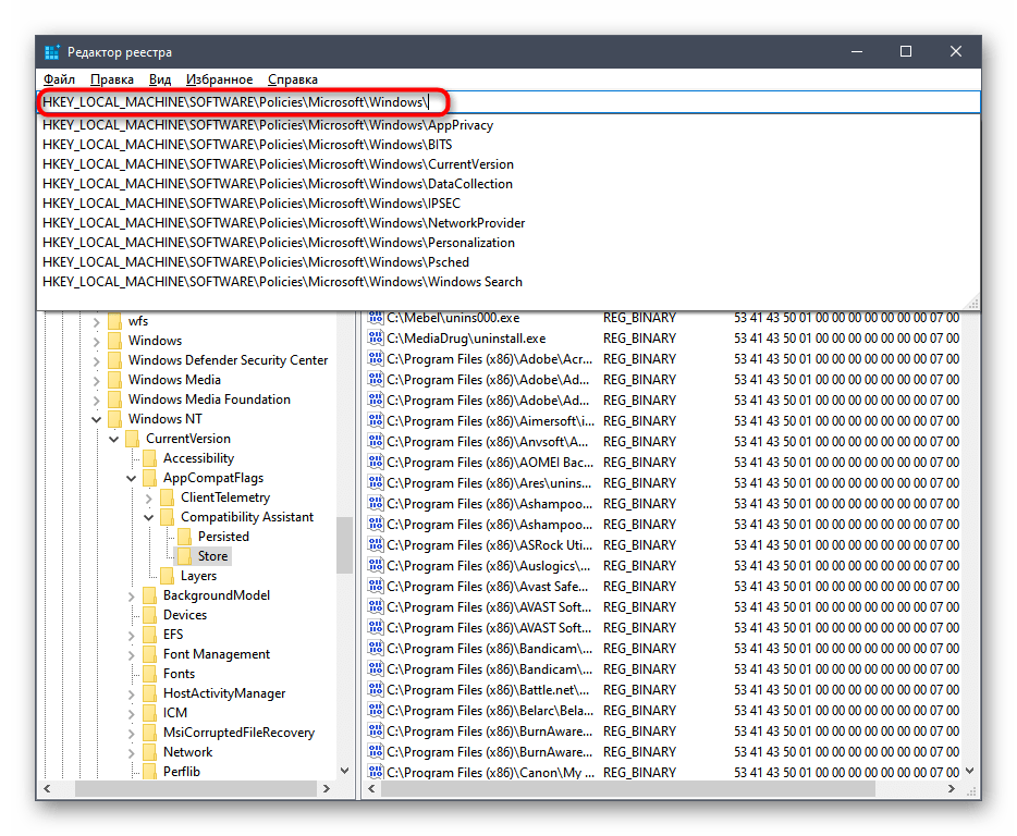 За действие политики может отвечать каталог с параметрами в реестре, провоцируя появление ошибки при инсталляции определенных программ. Лучший способ проверить это — найти каталог и, в случае его наличия, удалить.