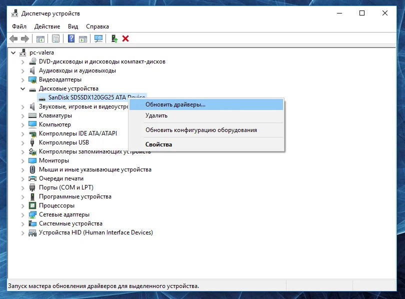 - В раскрывшемся меню выберите пункт обновить драйверы…